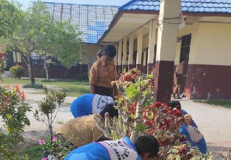DALAM KEGIATAN JUMAT BERSIH ANAK - ANAK DAN GURU SMPN 3 PALANGKA RAYA,BERSIH - BERSIH DI KELAS DAN DI LINGKUNGAN SEKOLAH