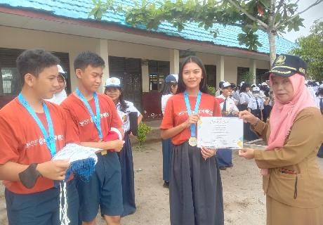 PENYERAHAN MEDALI DAN SRTIFIKAT OLEH KEPALA SEKOLAH SMP NEGERI 3 PALANGKA RAYA KEPADA SISWA SISWI YANG MERAIH JUARA PENCAK SILAT